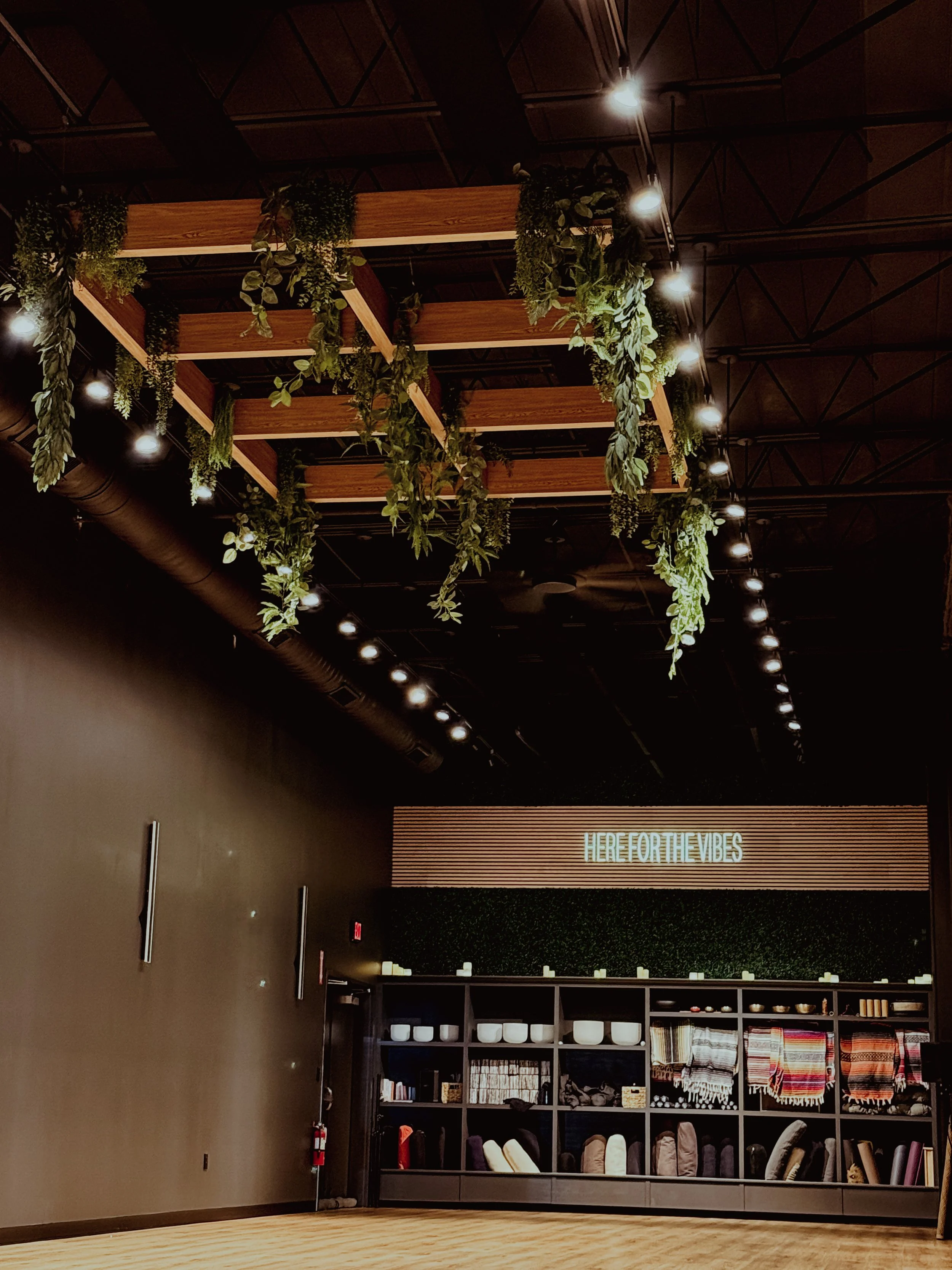 At Vibe Yoga Lab, we’ve intentionally created a space that feels like an exhale. Our larger studio gives every student room to move freely and comfortably — to stretch out, take up space, and settle into their own flow. The lighting stays low, the atmosphere soft and grounded, so you never feel like you’re performing on stage. Most of our classes are taught without mirrors, allowing you to tune out comparison and tune into what really matters: your breath, your body, and your practice.