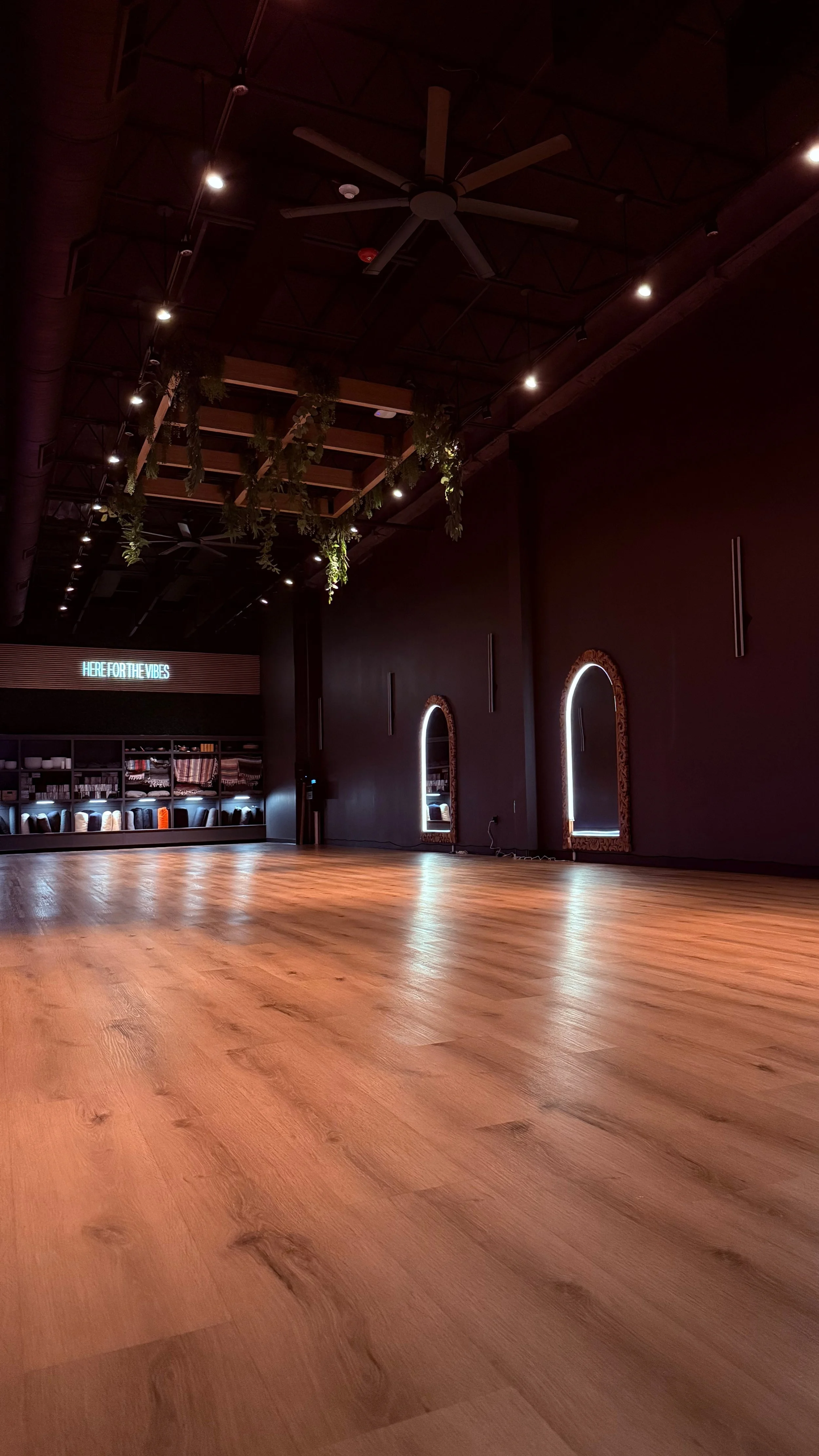 At Vibe Yoga Lab, we’ve intentionally created a space that feels like an exhale. Our larger studio gives every student room to move freely and comfortably — to stretch out, take up space, and settle into their own flow. The lighting stays low, the atmosphere soft and grounded, so you never feel like you’re performing on stage. Most of our classes are taught without mirrors, allowing you to tune out comparison and tune into what really matters: your breath, your body, and your practice.